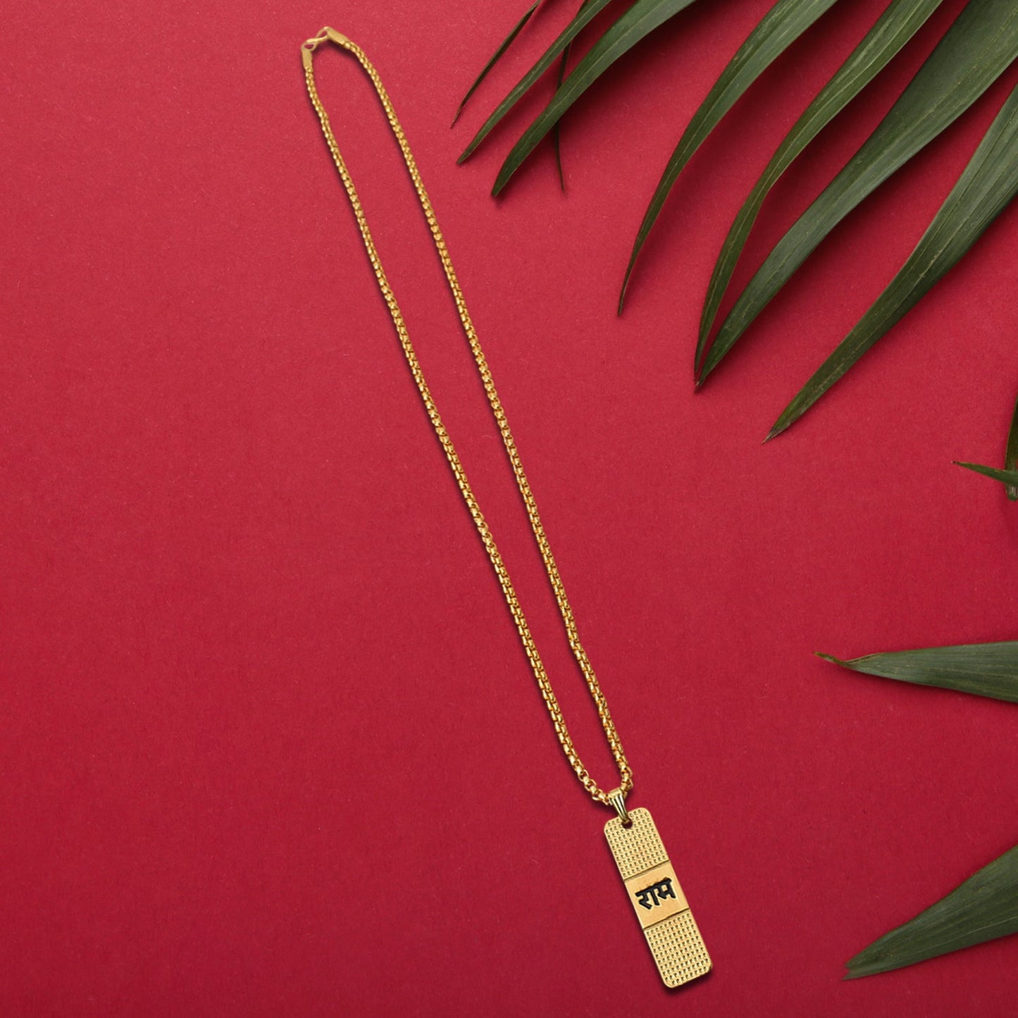 Golden Ram Naam Locket With Chain Gold Plated Shri Ram Engraved Ram Name Letter Pendant Daily Use Jewelry for Men-Women & Girls-Boys (1 Pc)