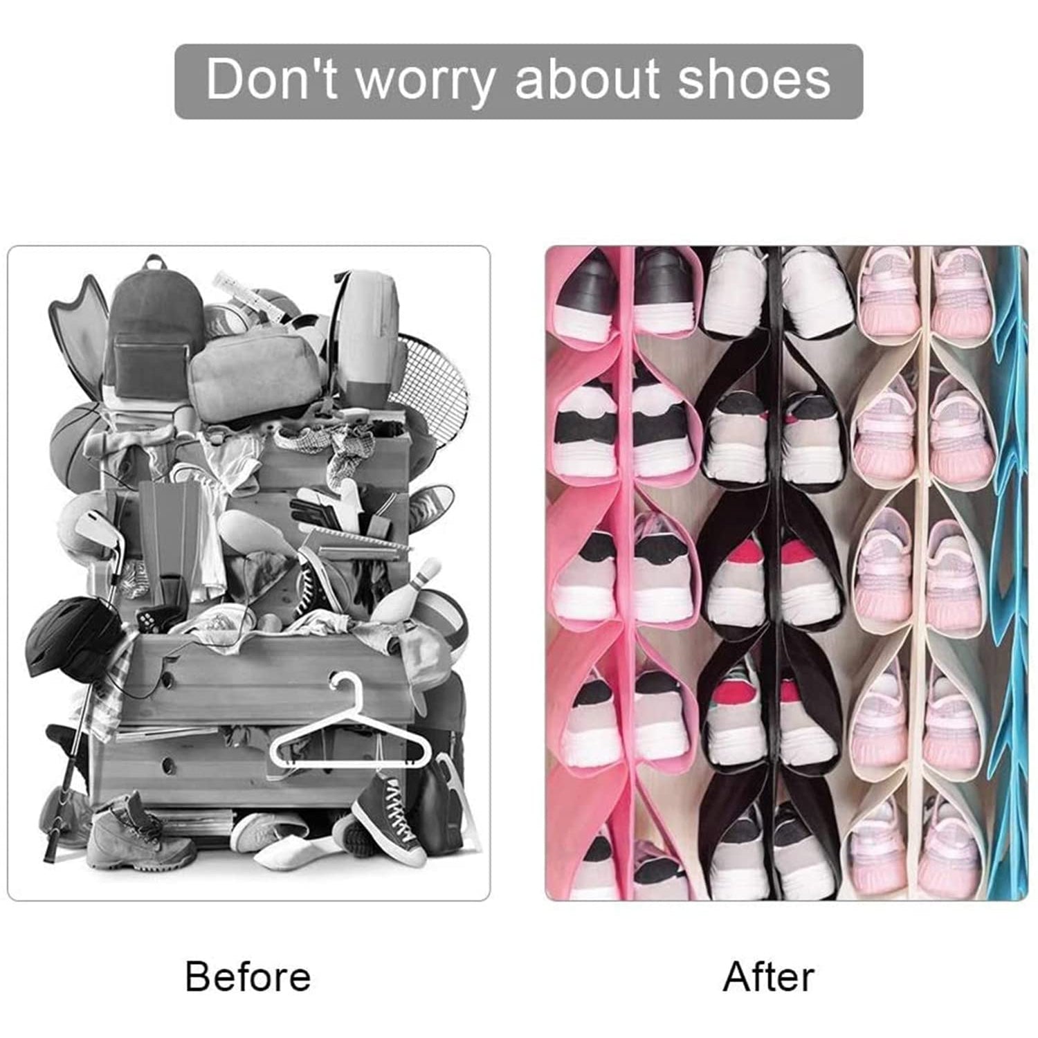 - KEEP SHOES ORGANIZED: Slide one shoe into each pocket and always know just where to find it.