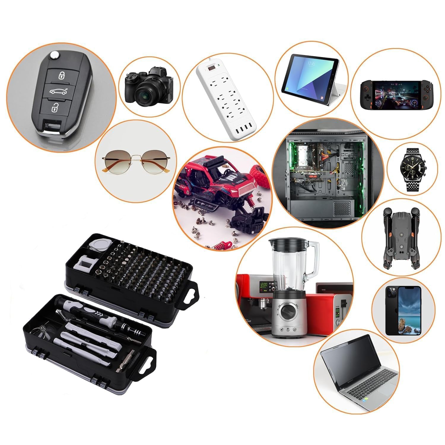 The 115-in-1 Precision Screwdriver Repair Tool Kit is your all-in-one solution for tackling delicate electronic repairs and DIY maintenance projects. Designed for professionals and hobbyists alike, this compact toolkit includes varied bits and essential tools for disassembling and repairing laptops, smartphones, tablets, game consoles, eyeglasses, watches, cameras, and more.