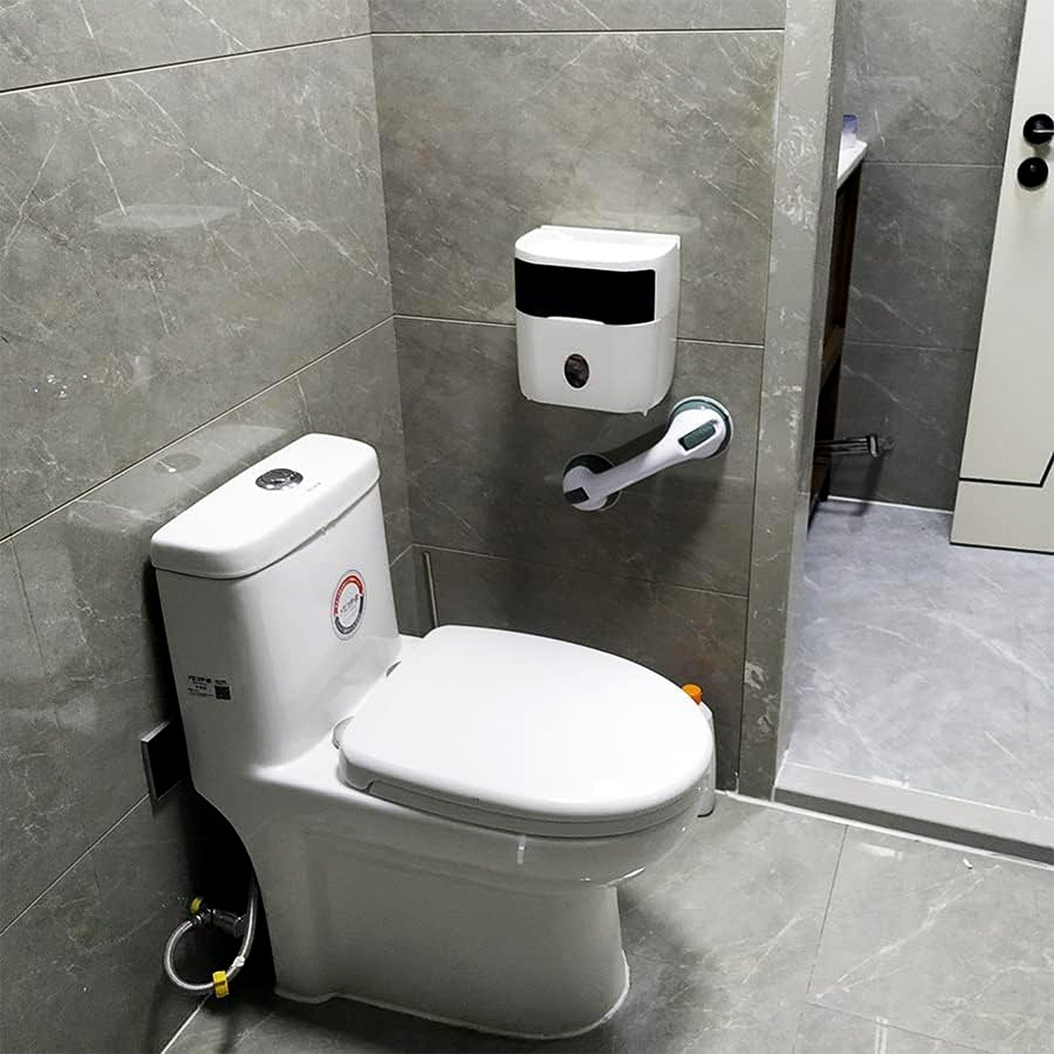 No tools or drilling required—simply press and lock in place. With a durable plastic body and ergonomic grip, this handle offers convenience, comfort, and peace of mind in bathrooms, bathtubs, and other wet zones.
